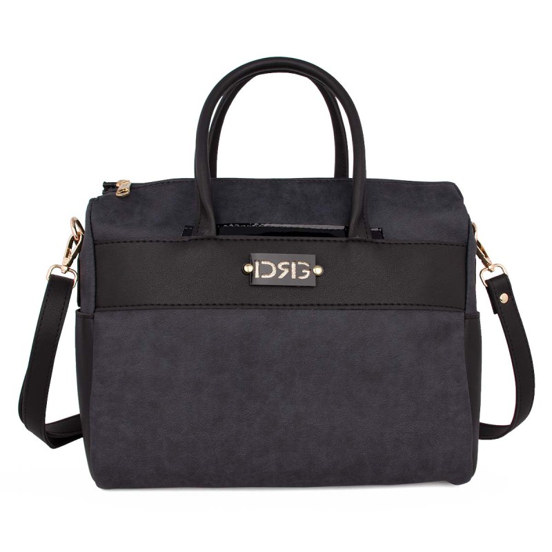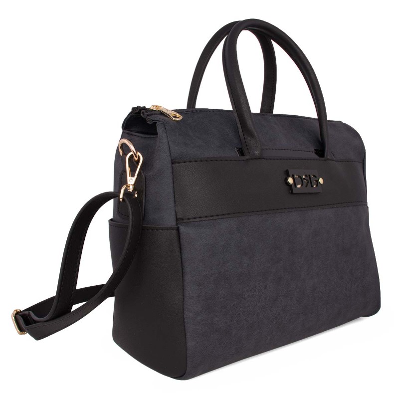 Black Shoulder Bag, made from eco-friendly leather with a leather absorbent and breathable lining. It features 2 internal pockets, one with a zipper. Adjustable and removable shoulder strap. Dimensions: H: 26cm, W: 34cm, D: 15cm.